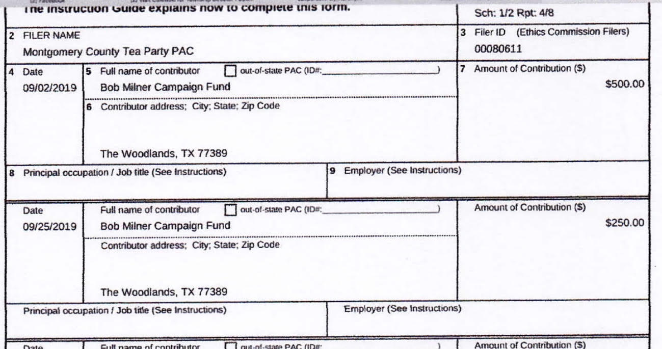Milner and Sekula-Gibbs were the only 2 Township candidates to contribute to the Montgomery County Tea Party (MCTP) and both received endorsements. Was Milner also “confused” or did he intentionally fail to report $500 of the $750 he contributed to his endorser, the Montgomery County Tea Party PAC on his Campaign Finance Report?